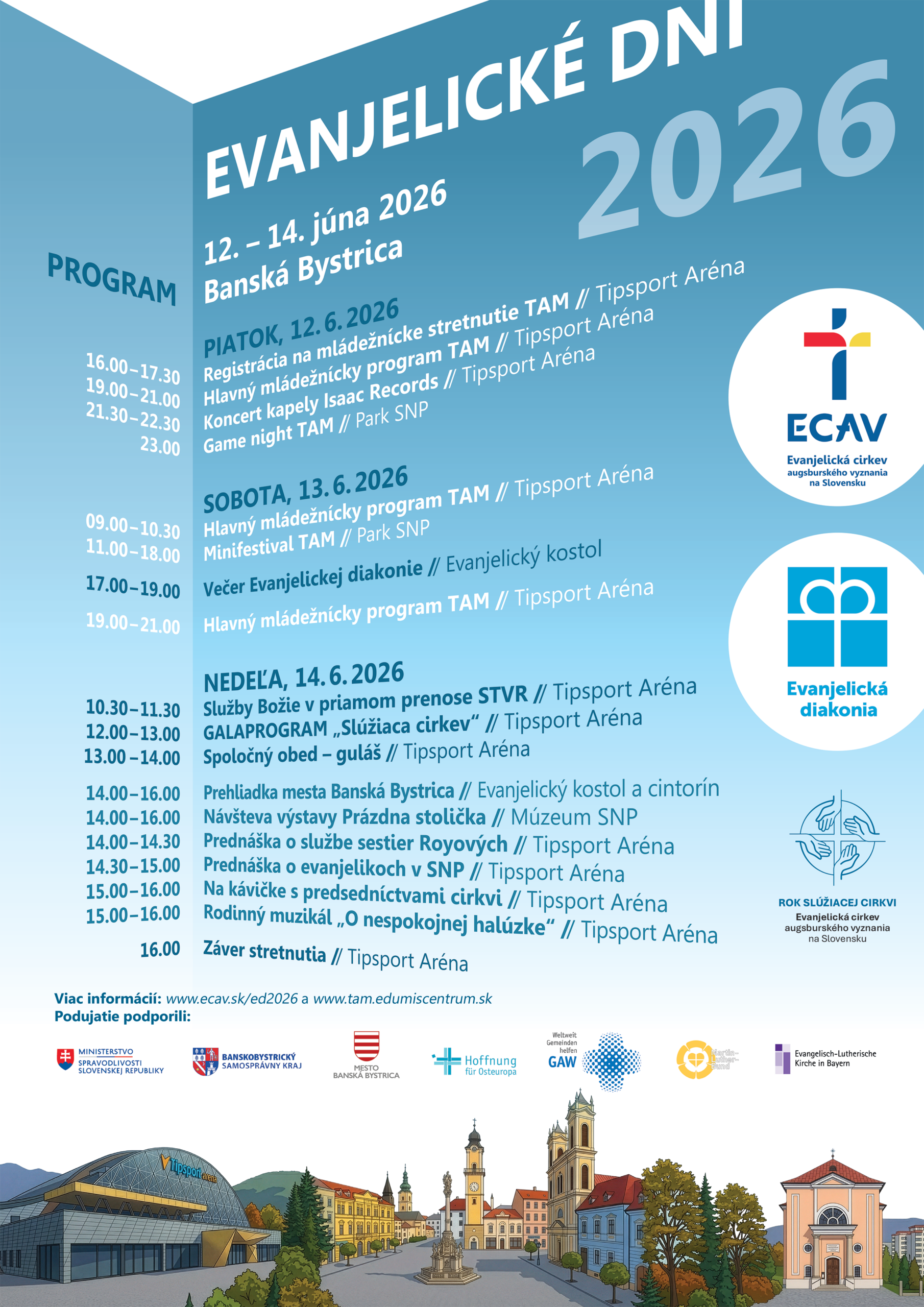 Viac informácií nájdete na: https://www.ecav.sk/aktuality/oznamy/pozyvame-vas-na-evanjelicke-dni-2026